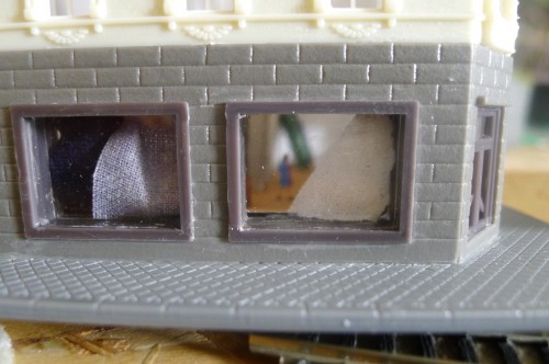 Další na řadu přišel střední dům bloku. Zde bude Spořitelna, čemuž odpovídá i vnitřní vybavení se sklem oddělujícím obsluhu a zákazníky. Nesmí chybět ani fronty, které si z dětství ve spořitelně pamatuju :-)