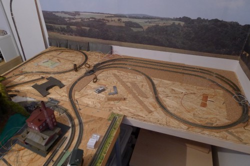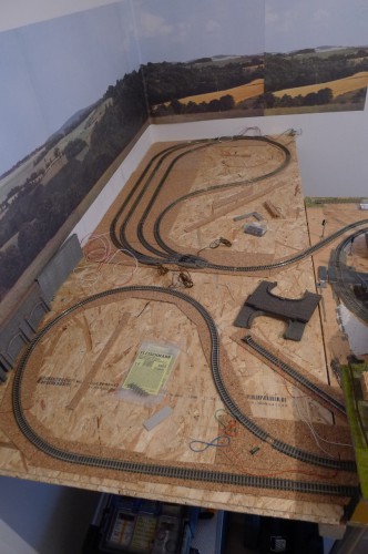 Původní kolejiště jsem otočil o 90stupňů a přidal další panel.