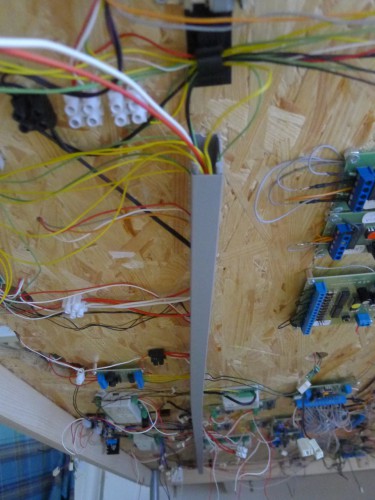 Zásadní přestavba probíhá taky pod panelem. Chtěl bych i na domácím kolejišti ovládat mašiny Fredem jako v klubu. Druhou centrálu již vlastním nějaký čas a nyní "jen" musím oddělit signál pro příslušenství a napájení kolejí. V budoucnu bude možný provoz buďto kompletně pod Lenzem jako doposud nebo se napájení kolejí přepne na Loconet a mašiny budou jezdit na Fredy.