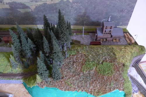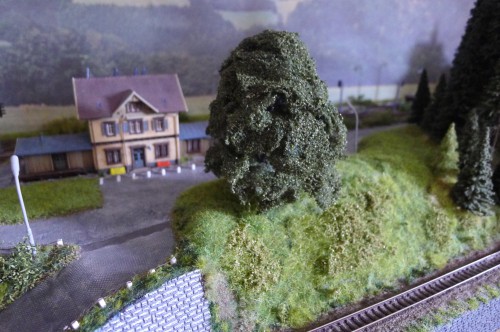 Proti nádražní budově na kopečku vyrostl i velký kaštan. Opět výrobek ModelScene. Mám ho hlavně, abych měl inspiraci a vzor, jak správně vyrábět stromy. Ve skutečnosti mě asi bude pěkně štvát, že se mu mé výtvory moc nepodobají :-)
